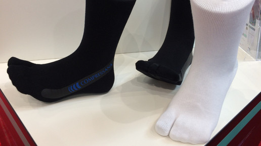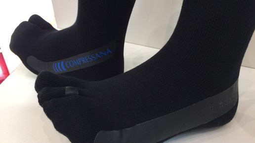 Tape meets Socke heißt es bei Compressana. Aus Neutraubling kommen Korrektursocken nach japanischem Vorbild bei Hallux valgus und Hammerzeh. Für das kommende Jahr sind außerdem Tape Sox für den Senk-/Spreizfuß geplant. Die Tabisocke wird auch Zwei-Zehensocke genannt und kommt direkt aus Japan. In Bayern bekommt diese dann das entsprechende Tape.