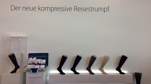 Kompressionsstrümpfe, Sportsocken oder Strümpfe speziell für Diabetiker haben längst in den Apotheken Einzug gehalten. Vielflieger und Geschäftsreisende sollten den Reisestrumpf in ihrem Gepäck nicht vergessen. Wer unterwegs viel sitzt und sich kaum bewegt, kann Gefahr, laufen an einer Thrombose zu erkranken. Belsana stellt auf der Expopharm den neuen kompressiven individuellen Reisestrumpf Traveller vor, der Reise-Thrombosen vorbeugen soll.