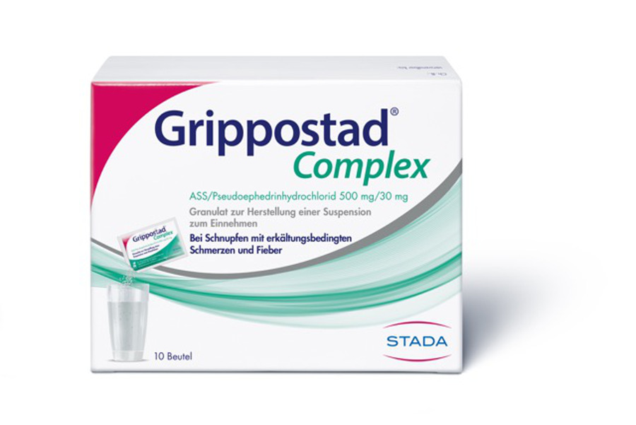 Grippostad Complex ist in der Zusammensetzung identisch mit Aspirin Complex (Acetylsalicylsäure 500 mg/Pseudoephedrin 30 mg) und soll als Trinkgranulat auf den Markt kommen. Der Name wurde vom Bundesinstitut für Arzneimittel und Medizinprodukte (BfArM) bereits genehmigt. Wie beim Konkurrenzprodukt werden Packungen zu 10 und 20 Beutel erhältlich sein. Auch beim Preis folgt Stada dem Original, die Indikation ist ebenfalls dieselbe: Das Arzneimittel kann zur symptomatischen Behandlung von Schleimhautschwellungen der Nase und der Nebenhöhlen sowie Schnupfen mit Schmerzen und Fieber aufgrund eines grippalen Infektes angewendet werden.