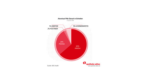 Ganz vorn liegt mit 65 Prozent EllaOne. Das Präparat mit 30 mg Ulipristal kann bis zu 120 statt 72 Stunden nach dem ungeschützten Geschlechtsverkehr angewendet werden und ist noch patentgeschützt.