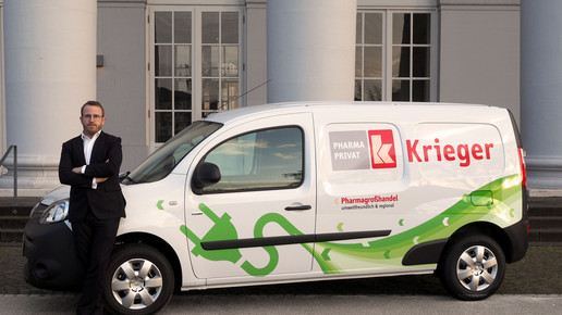 Auch andere Pharmalogistiker testen bereits den Einsatz von E-Fahrzeugen: Der Privatgroßhändler Krieger hat Anfang des Jahres ein vollständig elektrisch betriebenes Fahrzeug in seine Flotte aufgenommen. Der Renault-Kleintransporter hat eine maximale Reichweite von 270 Kilometern und wird von Koblenz Rauental aus in einem Radius von 30 Kilometern eingesetzt. Krieger betont, dass der Umweltschutz nicht zu Lasten der Arzneimittelsicherheit geht: Der Transporter erfüllt alle GDP-Anforderungen für die temperaturgeführte Arzneimitteldistribution.
