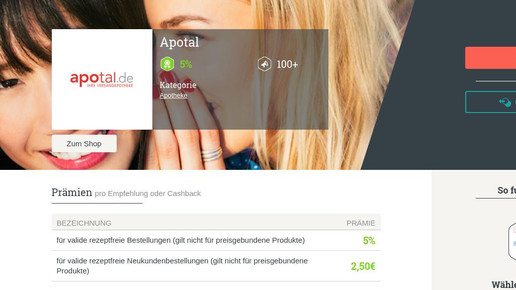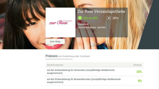 Auch bei anderen Cashback-Portalen sind die Versandapotheken aktiv. Auf Shoop offerieren Versandapotheken auf ihre Discountpreise nochmals einen kräftigen Preisnachlass. Für Kunden, die über das Cashback-Portal eine Bestellung aufgeben, erhält Shoop von den Versandapotheken und den anderen rund 2000 angeschlossenen Geschäften eine Provision. Diese gibt Shoop teilweise an seine 600.000 registrierten Kunden weiter. Wie hoch die Shoop-Marge ist, wird selbstverständlich nicht verraten. Aber nach eigenen Angaben ist Shoop.de das größte Cashback-Portal am Markt.