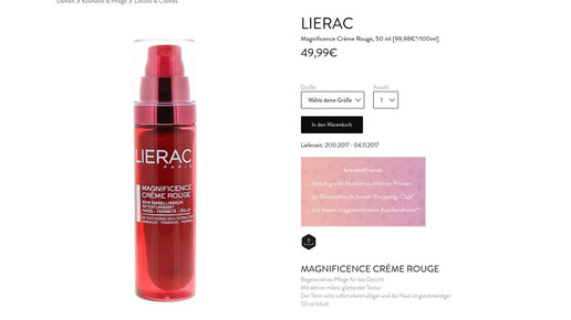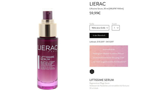 Zum wiederholten Male sind apothekenexklusive Pflegeprodukte im Onlinehandel aufgetaucht. Bei Brands4Friends können Mitglieder derzeit Produkte von Vichy und Lierac zum Schnäppchenpreis bestellen. Von Vichy ist die ganze Bandbreite an Produkten bei Brands4Friends gelistet, von Bartpflege über Sonnenschutz bis hin zu Make-up-Entferner. Auch die Kosmetiklinie Lierac vom französischen Kosmetikunternehmen Alès ist mit 71 Produkten vertreten, unter anderem mit Anti-Aging-Produkten und Parfüm. Das Liftingserum Liftissime gibt es zum Beispiel für knapp 60 Euro. In Versandapotheken geht das Produkt für 38 bis 74 Euro weg.