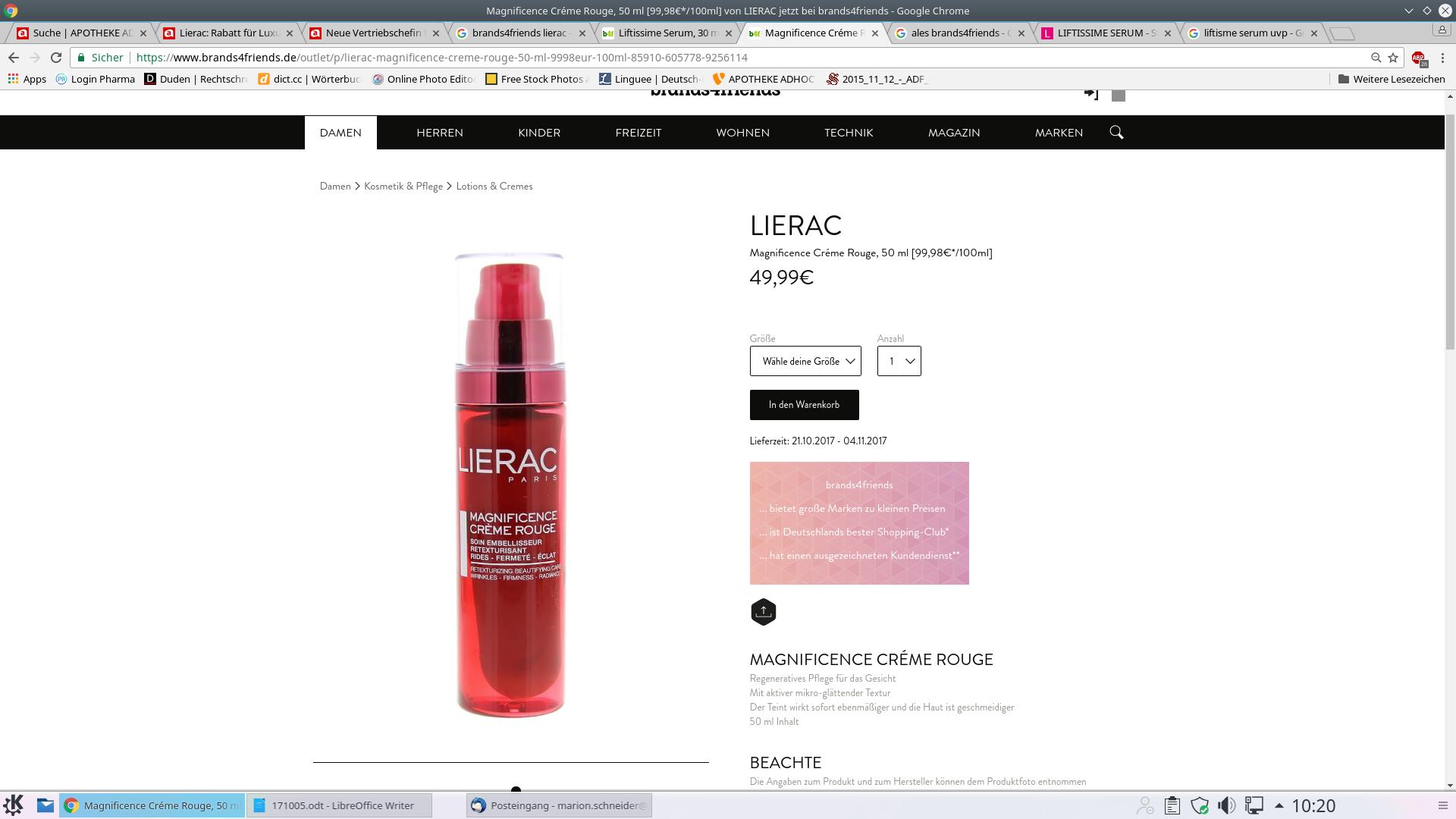 Dass die Apothekenmarken jetzt bei Brands4Friends auftauchen, dürfte nicht im Interesse der Hersteller sein. Lierac wird hierzulande seit 1991 angeboten und nur in Apotheken vertrieben. Wie die Produkte bei Brands4Friends landeten, kann man sich in der Zentrale in Frankfurt nicht erklären. „Wir wollen weiter apothekenexklusiv bleiben“, beteuerte das Unternehmen kürzlich. „Wir prüfen über unsere Rechtsabteilung mögliche Schritte, um den Verkauf unserer Produkte auf Brands4Friends konsequent und nachhaltig zu verhindern“, kündigt die Sprecherin an.