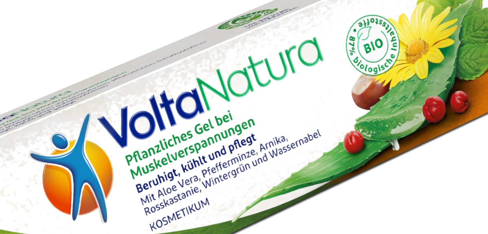 Voltanatura enthält Arnika, Rosskastanie und asiatischen Wassernabel – sie alle sollen beruhigend wirken. Außerdem sind Extrakte aus Wintergrün und Pfefferminze enthalten, welche für einen kühlenden und erfrischenden Effekt sorgen sollen. Aloe Vera spendet zudem Feuchtigkeit.