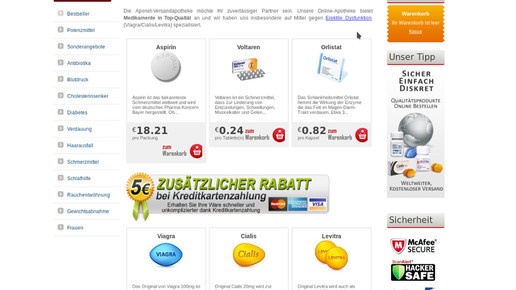 Aktuell wirbt eine Versandapotheke im Internet und über E-Mail-Aussendungen mit der Webadresse „aponet-versandapotheke.de” für sich. Unter dem Deckmantel falscher offizieller Adressen wird hier versucht, mit Medikamenten und Potenzmitteln Kasse zu machen.