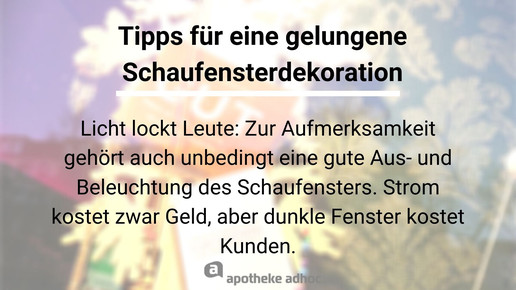 Gerade jetzt in der Corona-Zeit haben Schaufenster wohl eine noch wichtigere Bedeutung bekommen: Da in vielen Apotheken nur eine bestimmt Personenanzahl eingelassen wird, bietet sich ein intensiver Blick ins Schaufenster zur Zeitüberbrückung an. Aber was macht eigentlich ein gutes Schaufenster aus?