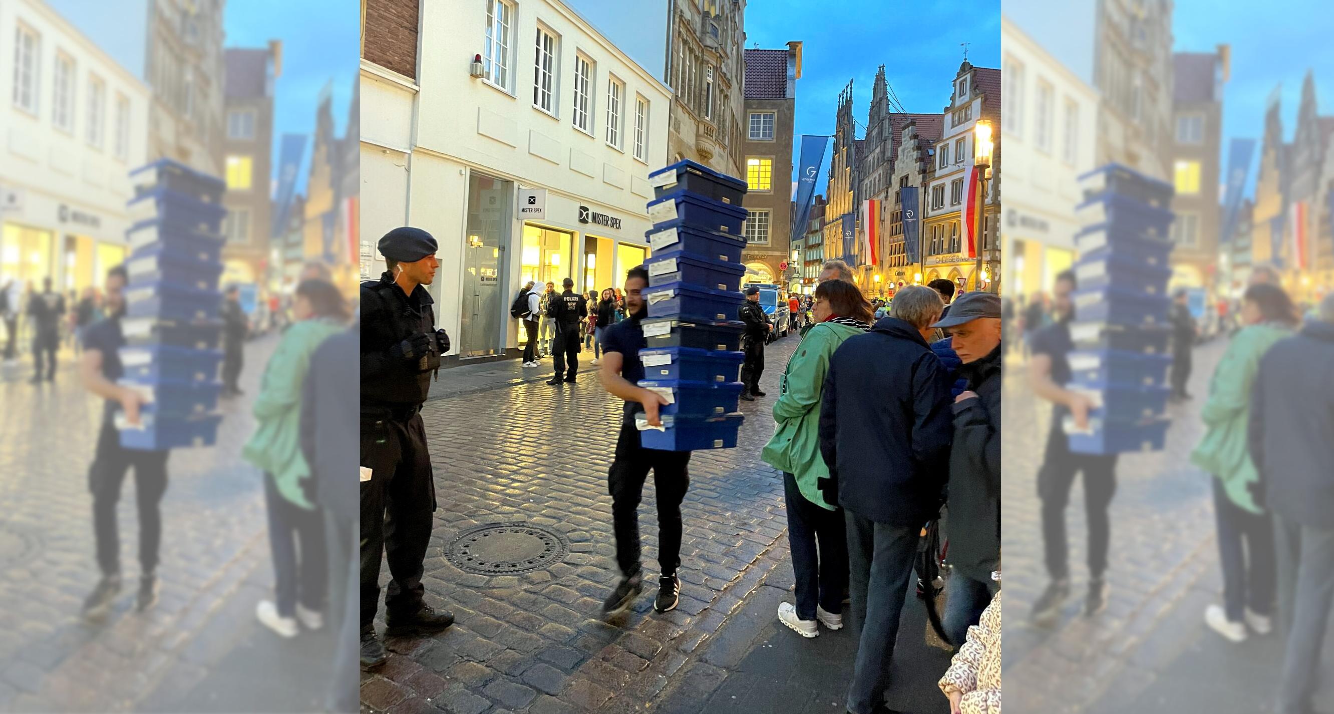 Die Noweda-Lieferanten kamen nicht wie bis zu den Apotheken durch. Doch der Fahrer disponierte einfach um. Er lieferte die Arzneimittel zu Fuß. Mit einem Stapel von neun Wannen balancierte er durch die Innenstadt. Der Kollege sei „cool“ geblieben, heißt es von der Noweda. „Auch die Polizei scheint beeindruckt.“ Der Mann sei „unser Mitarbeiter des Monats“, sagt ein Sprecher.