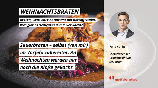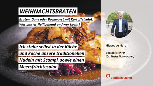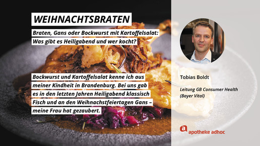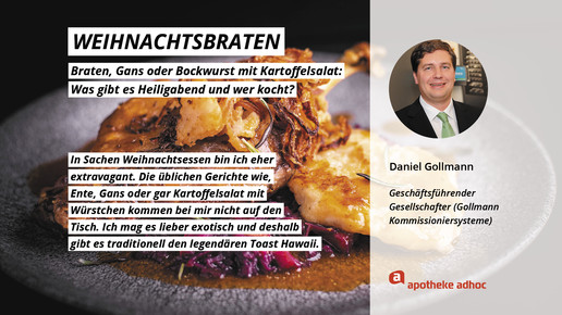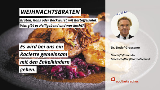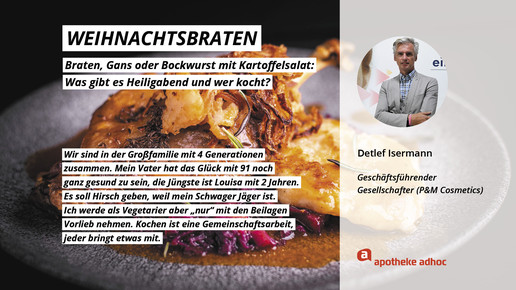 Weihnachten ist das Fest der Liebe – und der Weihnachtsmenüs. Hier verraten die Pharma-Promis, was bei ihnen Heiligabend auf den Tisch kommt und wer bei ihnen in der Küche steht.