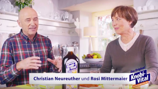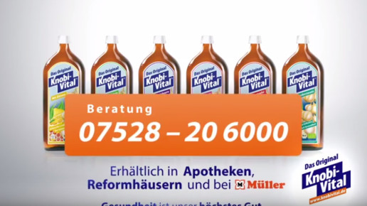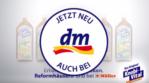 Der Saft Knobi-Vital wird im Fernsehen mit einem einprägsamen Jingle beworben. Dann sind die ehemaligen Sportler Christian Neureuther und Rosie Mittermaier am Esstisch zu sehen und der ehemalige Skirennläufer erklärt: „Ich komme noch aus einer Generation, wo man gemeint hat, man kann mit Pillen alles heilen.“ Jetzt gebe es jedoch die verstärkte Tendenz zu Natur statt Chemie. Der Hersteller aus dem Allgäu verweist auf die Bezugsquellen Apotheken, Reformhäuser und Müller. „Und jetzt auch in ihrem dm“, heißt es am Ende des Spots. Dazu wird das Logo des Marktführers eingeblendet.