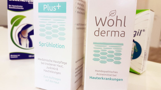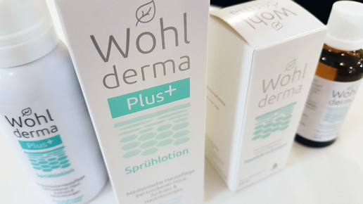 Die Wohlderma-Serie besteht aus einer Sprühlotion und homöopathischen Tropfen. Die Behandlung von innen und außen soll trockene Haut, juckende Hauterkrankungen und Hautausschlag lindern und die Selbstheilungskräfte aktivieren. Die Tropfen enthalten Rhus toxicodendron D6 und Clematis recta D4. Die Lotion setzt auf bewährte Inhaltsstoffe wie Dexpanthenol, Polidocanol und Allantoin und ist nicht nur als Ergänzung gedacht, sondern auch als Verlängerung in die Freiwahl.