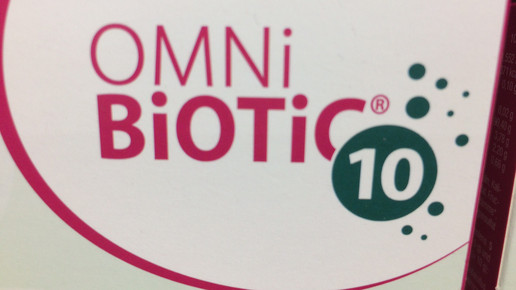 Allergosan bewirbt das Produkt Omnibiotic 10 als „Probiotikum zum Antibiotikum“. Die Portionsbeutel enthalten zehn Bakterienstämme mit mindestens 5 Milliarden Keimen pro Portion und sind dazu gedacht, dem Körper die natürlich im menschlichen Darm vorkommenden Bakterien zuzuführen. Der Hinweis „zu jedem Antibotikum“ findet sich auch auf der Verpackung, genauso wie die Formulierung „wissenschaftlich geprüft“.