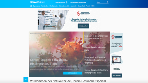 NetDoktor, laut Burda das reichweitenstärkste Online-Gesundheitsportal im deutschsprachigen Raum, gehört seit September 2019 zu Burda und seitdem Partner des Zukunftspakts Apotheke. Das Portal bietet seinen Nutzern seit 1999 leicht verständliche medizinische Informationen zu den wichtigsten Krankheiten, Symptomen, Untersuchungen und Medikamenten.
