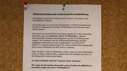 Zum einen wurde die mangelnde Kommunikation zu den Abgängen kritisiert. Die Verfasser unterstellen aber auch, dass die Unternehmensführung die Tragweite der Situation unterschätze. Der Tonfall war dramatisch: „Wir sehen die Rezeptabrechnung für unsere Kunden als gefährdet an und haben Angst um unsere Arbeitsplätze!“ Und in diesem besorgten Tonfall ging es weiter: „Wer soll die Rezeptabrechnung noch durchführen, wenn bis auf wenige IT-Kollegen alle gekündigt haben und das Fachwissen verloren gegangen ist? Wer kümmert sich um die Produktionsprozesse, wenn bis auf einen Wissensträger alle gekündigt haben?“