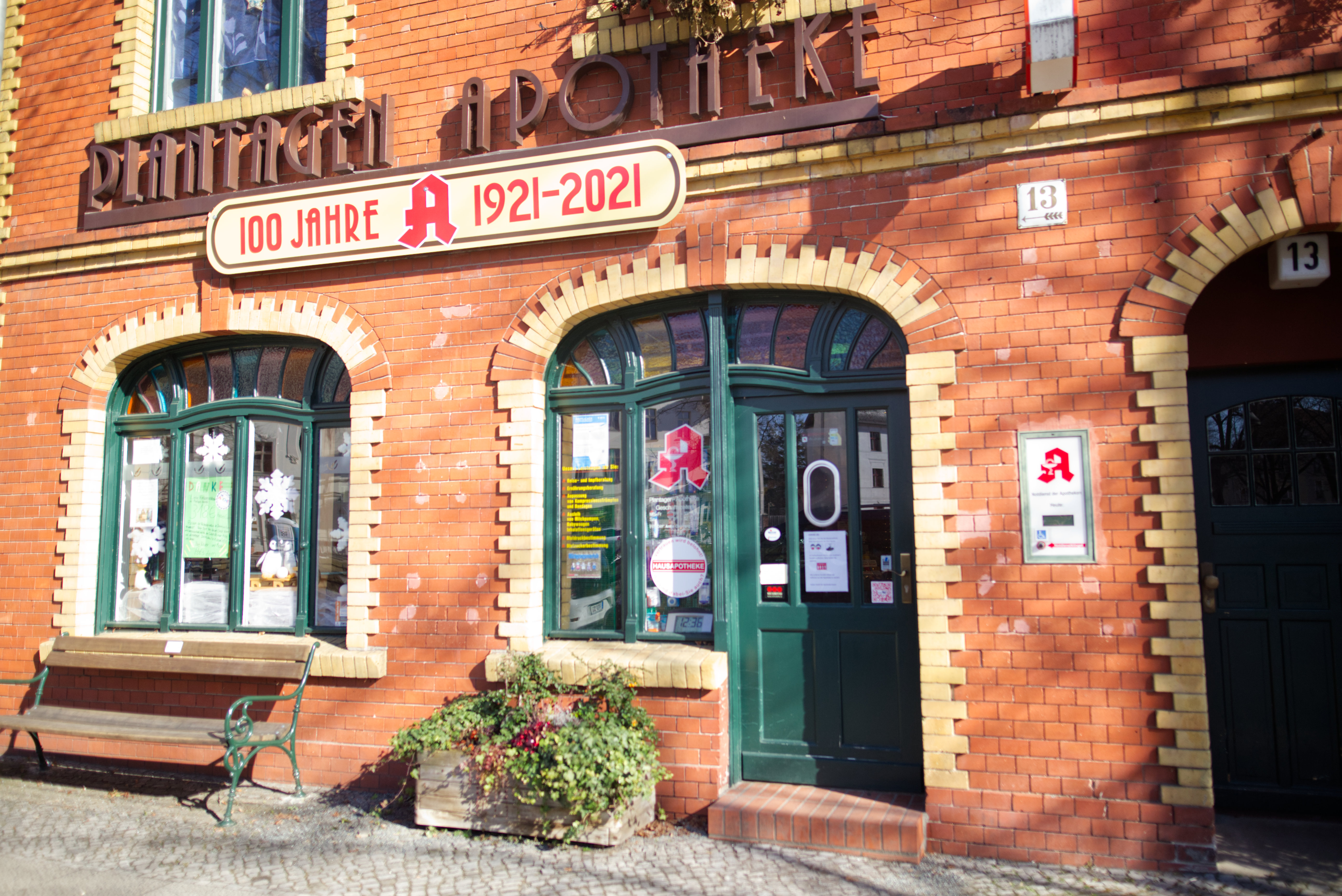 Erst als der Oberpräsident der Provinz Brandenburg dem Apotheker Otto Teetzen die heiß begehrte Lizenz für eine dritte Apotheke erteilte, entstand in den ehemaligen Schankräumen einer anliegenden Brauerei die Plantagen-Apotheke.