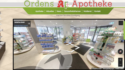 „Machen Sie einen Rundgang“, lautet die Aufforderung zur Apothekenerkundung auf der Website. Zusammen mit der Firma „BerlinFive“, welche sich auf die Online-Darstellung und Digitalisierung von Unternehmen durch 3D-Darstellungen und Google Street View spezialisiert hat, entstand die Idee. Als das Fototeam im Sommer vergangenen Jahres in der Umgebung unterwegs war, wurde Wiemann gefragt, ob er kein Interesse an der Aufnahme seiner Apotheke hätte: Nach kurzer Überlegung stand der Entschluss fest.