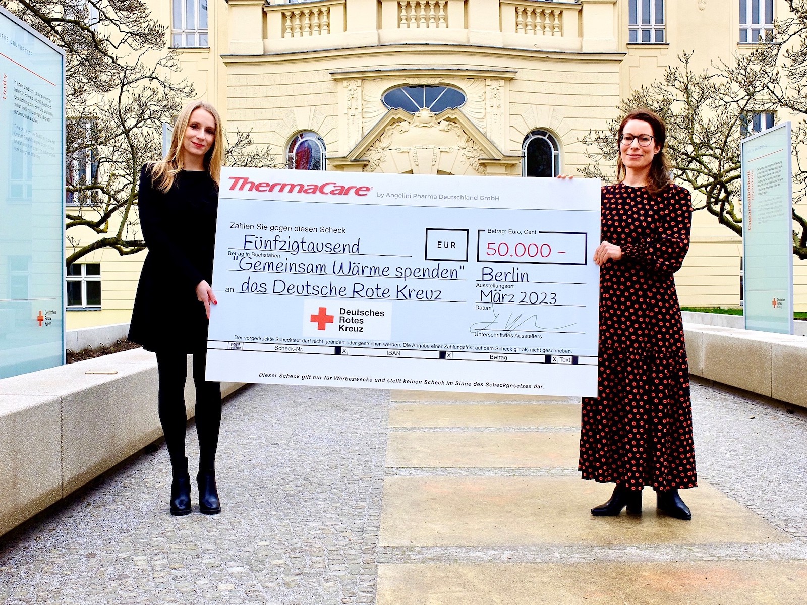 Die Coupon-Aktion von Angelini Pharma lief über den gesamten November, dabei konnten Kund:innen beim Kauf von ThermaCare Wärmeumschlägen jeweils einen Euro sparen. Jeder gesparte Euro wurde gespendet, denn pro eingelöstem Coupon unterstützte Angelini Pharma das Deutsche Rote Kreuz mit einem Euro. Nun wurde der Scheck in Höhe von 50.000 Euro übergeben.