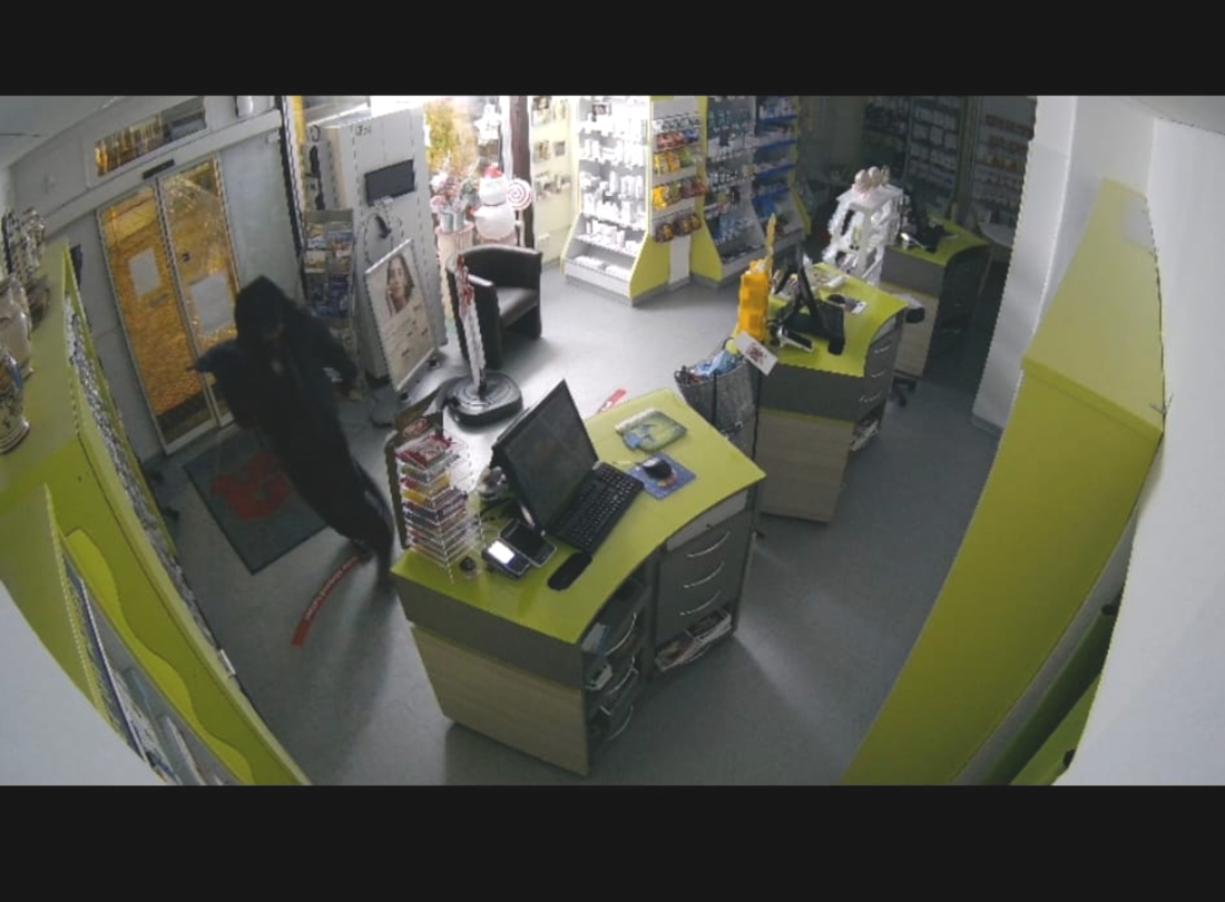 Im Anschluss spalteten sie die Tür auf, um in die Apotheke zu gelangen. Die Inhaberin hat alles auf den Überwachungskameras dokumentiert. Was dann geschah, überraschte die Einbrecher sicherlich – das installierte Abwehrsystem setzte Reizgas frei.
