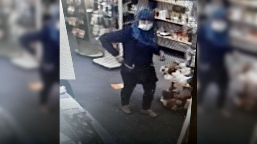 Auf einem Überwachungsvideo aus einer Apotheke trägt sie ein blaues Kopftuch. Komplizen gibt es offenbar nicht. Die Kripo ermittelt bereits.