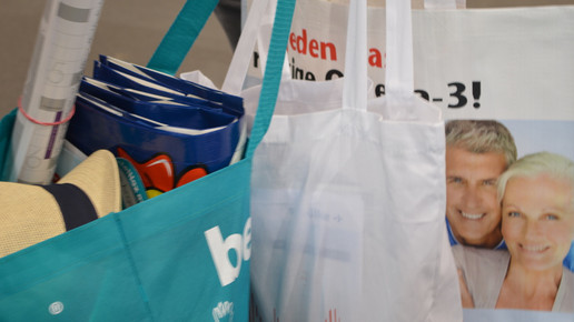 Was kommt in die Tüten und mit nach Hause? Expopharm-Besucher ließen uns in ihre Mitbringsel schauen.Foto: APOTHEKE ADHOC