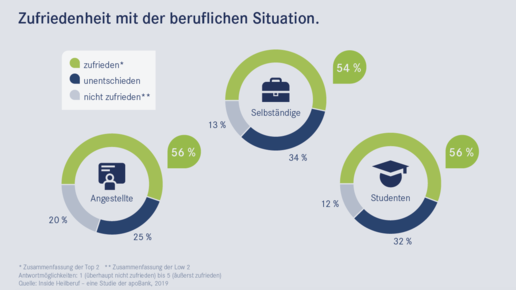 Vor allem bei Frauen sind seit der letzten Befragung im Jahr 2016 die Zufriedenheitswerte mit der beruflichen Situation um 11 Prozentpunkte signifikant gefallen und liegen aktuell bei 52 Prozent. Richtig unzufrieden sind 14 Prozent, ein Drittel (34 Prozent) äußert sich neutral.