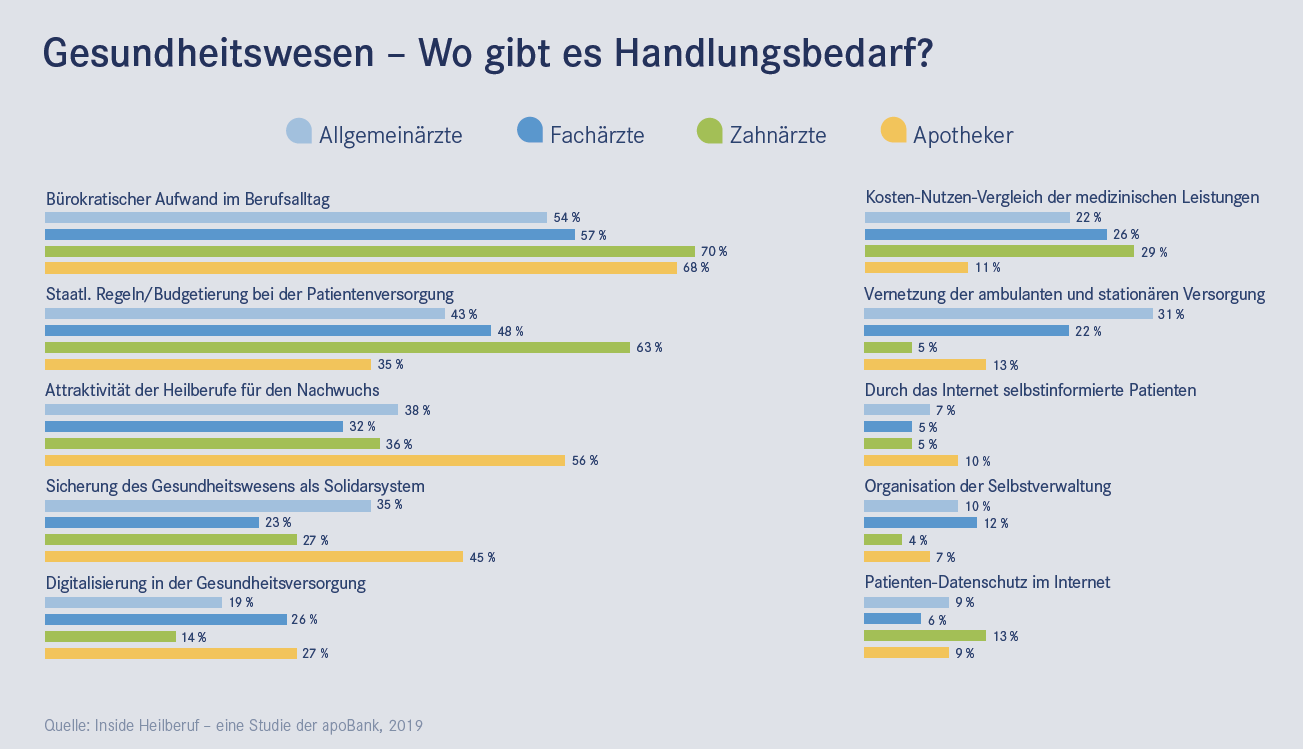 Für die Studie wurden im Auftrag der Apobank 500 Apotheker, Ärzte, Zahnärzte sowie Medizin-, Zahnmedizin- und Pharmaziestudenten befragt. Dabei waren 45 Prozent der Befragten weiblich und 55 Prozent männlich.