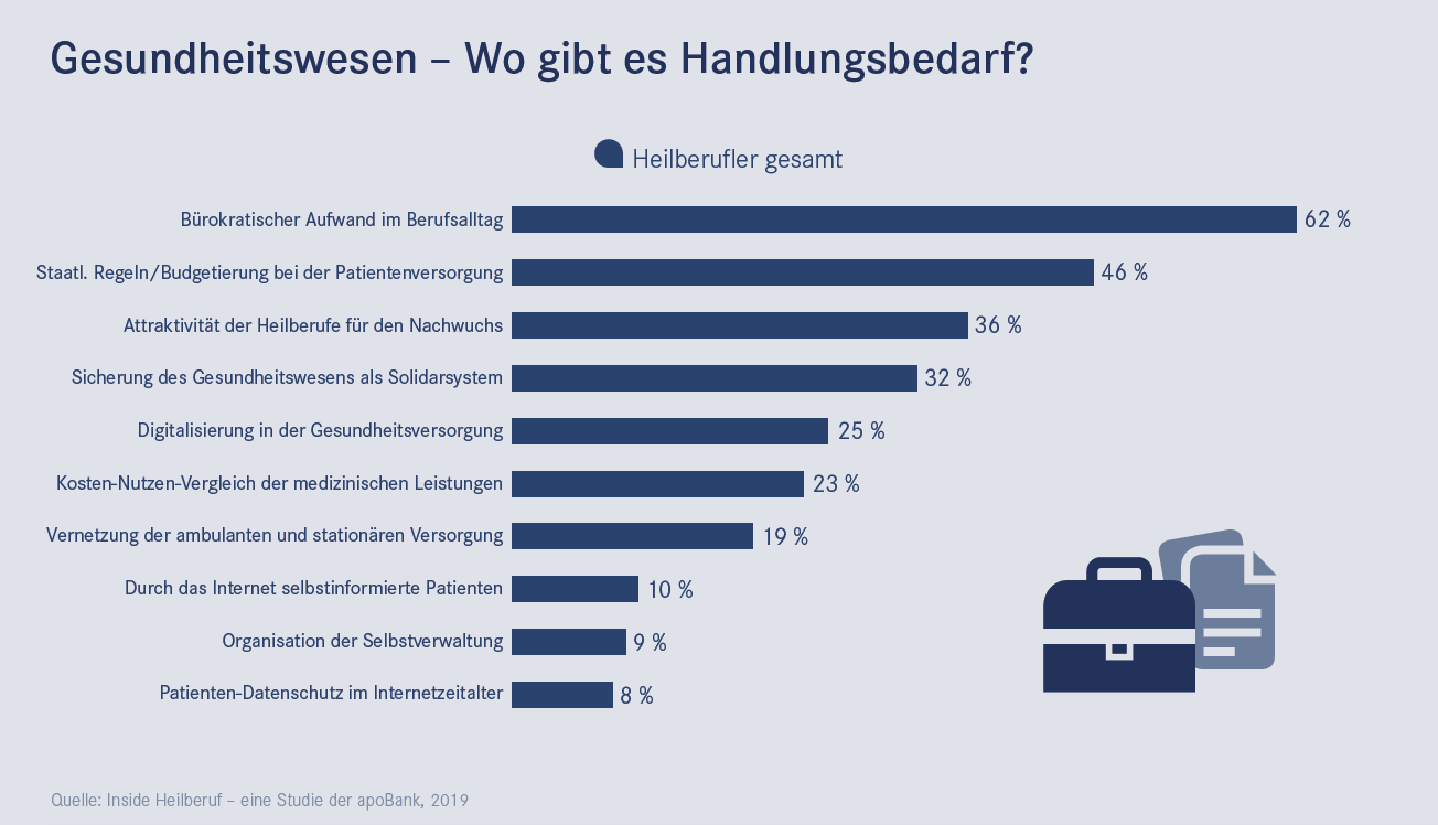 Das Bedürfnis nach mehr Fortbildung und Austausch mit Kollegen ist bei Frauen deutlich ausgeprägter als bei den Männern. Die Belastung durch Bürokratie empfinden Heilberuflerinnen offenbar noch stärker, die Dokumentation und Verwaltungsarbeit ist für 92 Prozent der Frauen ein wunder Punkt.