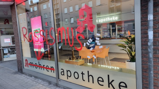 „Benennen Sie Ihre Apotheke umgehend um“, heißt es in dem Schreiben, das an die Schaufensterscheibe geklebt wurde. Die Mohren-Apotheke trägt seit über 100 Jahren diesen Namen. Doch das Wort „Mohr“ wird auf dieselbe Stufe wie das N-Wort gehoben und ist für viele Menschen eine rassistische Fremdbezeichnung. Auch wenn der Begriff bis zum 10. Jahrhundert die Ehrung der Mauren, die im Mittelalter pharmazeutisches Wissen nach Europa trugen, zum Ausdruck brachte, bekam er durch Sklaverei und Kolonialismus eine negative Assoziation.