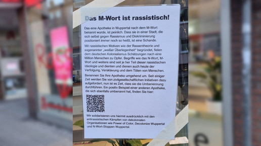 Es ist nicht das erste Mal, dass sich politisch Motivierte an der Bezeichnung „Mohren-Apotheke“ stören. In der Nacht von Dienstag auf Mittwoch haben Unbekannte die Schaufenster der entsprechend benannten Apotheke in Wuppertal beschmiert. Sie fordern Inhaber Timo Preißler zur sofortigen Umbenennung auf.