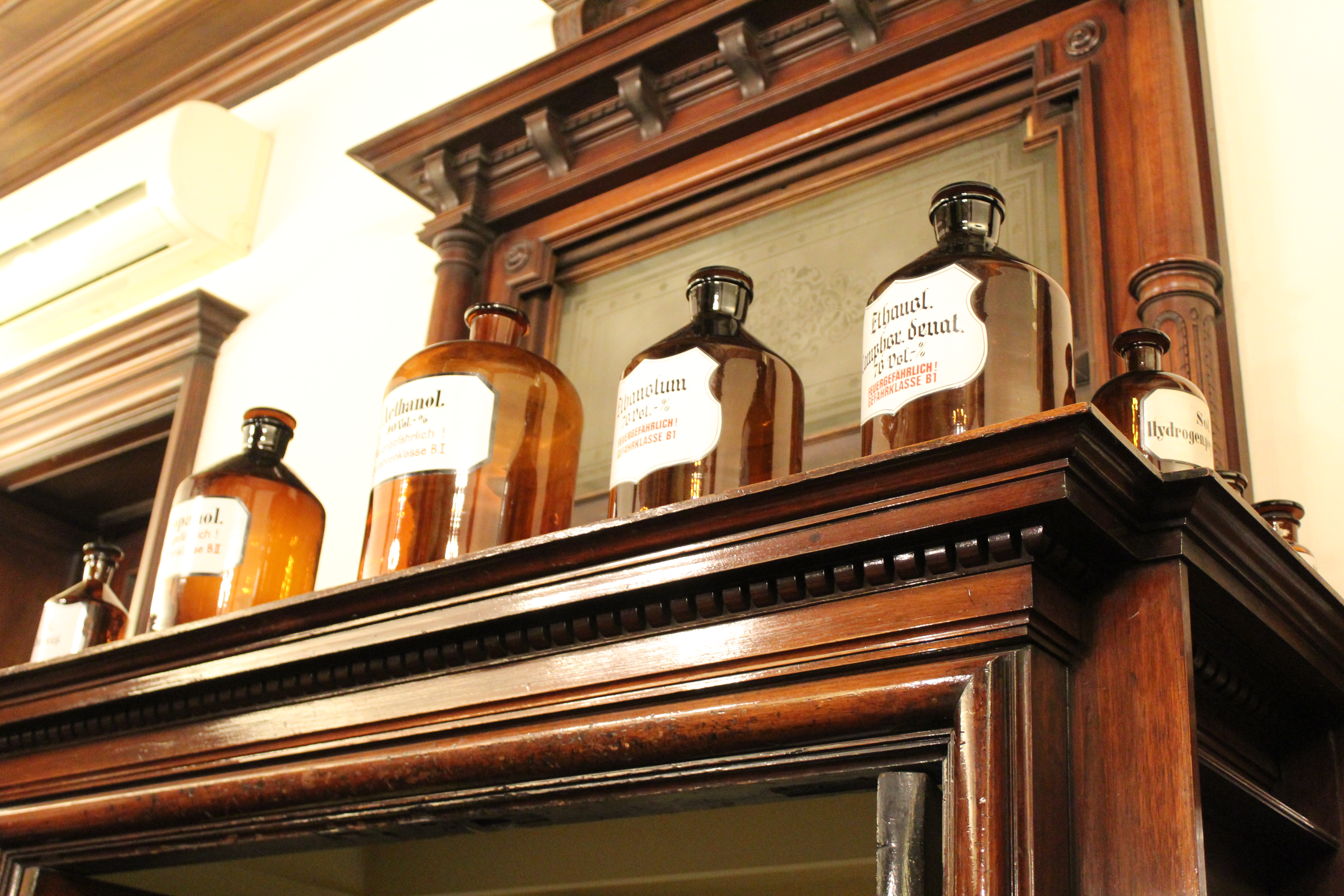 Ein Hingucker: Alte Standgefäße und Braunglasflaschen zieren die Offizin. Foto: APOTHEKE ADHOC