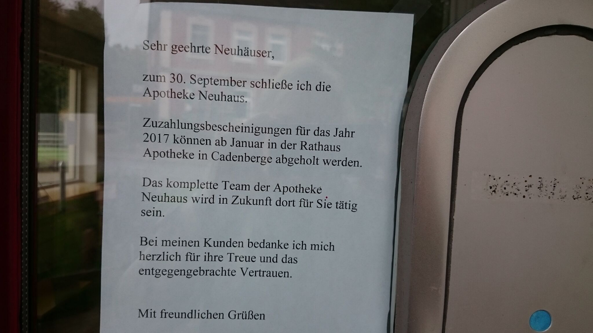Und so hat das Apothekerpaar beschlossen die Apotheke in Neuhaus zugunsten der Familie aufzugeben und sich voll und ganz auf die größere Rathaus-Apotheke in Cadenberge zu konzentrieren. Demnächst steht dort nach Angaben von Hörstrup ein aufwendiger Umbau an. „Wir haben uns in Cadenberge für die große Lösung entschieden, um modern und zukunftsfähig zu sein“, sagt der Apotheker, „dort wird ordentlich investiert.“ Unter anderem soll eine Automatiktür eingebaut werden und eine Automatisierung des Warenlagers stattfinden.