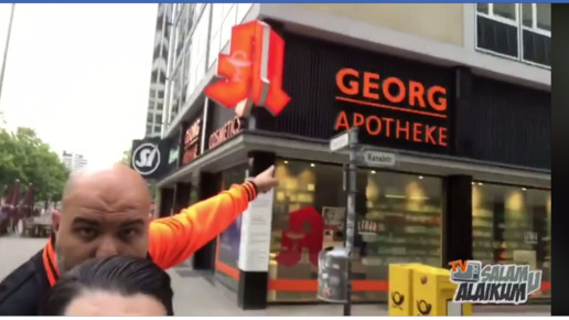 Der Mann habe ein „Riesendings gemacht, wo er Medizin verkauft hat“. Dann folgt in dem Video ein Schwenk auf die Georg-Apotheke – der Mann habe Georg geheißen und der Betrieb in Hannover gehöre ihm. „Krass Alter“, sagt Moe dazu, der die Szene mit seinem Handy gefilmt hat.