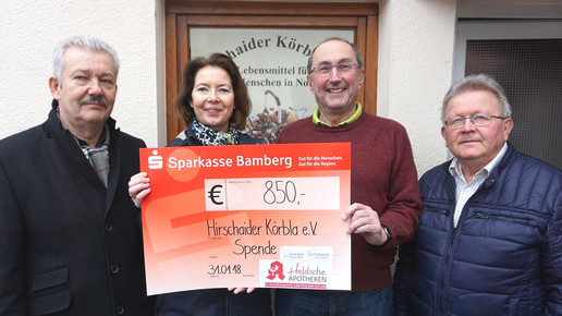 Regnitztaler für Tafel: Für Menschen in Not engagieren sich auch die Heldschen Apotheken in Bamberg und Hirschaid mitsamt ihren Kunden. Wer nicht rezeptpflichtige Produkte im Wert von mindestens 10 Euro kauft, erhält einen Regnitztaler im Wert von 50 Cent. Statt sie daheim zu horten, spendeten viele Kunden lieber ihren Taler für den guten Zweck. 2500 Euro konnte Apotheker Hartmut Held an die Bamberger Tafel und weitere 850 Euro an den Verein „Hirschaider Körbla – Lebensmittel für Menschen in Not“ übergeben.