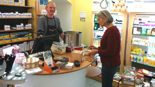 „Schon seit etwa zehn Jahren besuchen uns regelmäßig Kindergartengruppen“, erzählt Inhaber Pierre Theuerkauf. „Die Kinder sollen dabei unsere Apotheke kennenlernen. Und zwar nicht nur als einen Ort, an den man geht, wenn man krank ist.“ Durch Berührung mit Pflanzenteilen bekämen die Kleinen einen Bezug zur Natur. „Baldrianwurzel, Weidenrinde, Pfefferminzblätter, Kamillenblüten und noch einiges mehr werden befühlt, beschnuppert und zum Teil unter der Stereolupe betrachtet.“ Unbestrittenes Highlight sei aber der Kontakt mit dem Kommissionierer, hat Theuerkauf erfahren. „Hier helfen die Kinder beim Befüllen, schauen, wie der Automat die Packungen wegräumt, und sehen, wie die Arzneimittel über die digitale Sichtwahl wieder angefordert werden.“