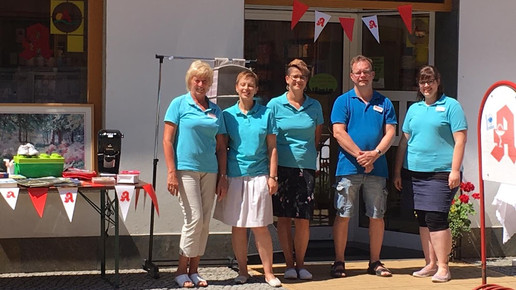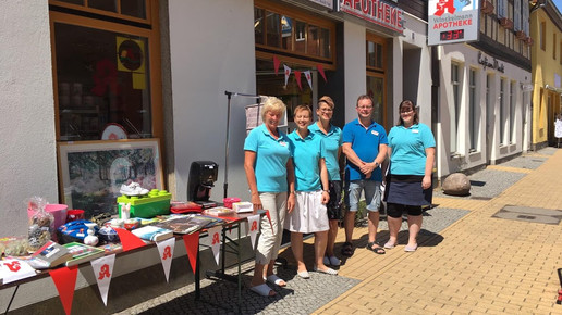 Auch andere Händler beteiligten sich am Freitag bei strahlendem Sonnenschein an der Aktion – ein Bekleidungsgeschäft, ein Buchladen und eine weitere Apotheke. Auf rund 400 Metern stehen Stände. Die Winckelmann-Apotheke schenkt bei 33 Grad zudem noch eine Bowle aus, den hauseigenen Tee.