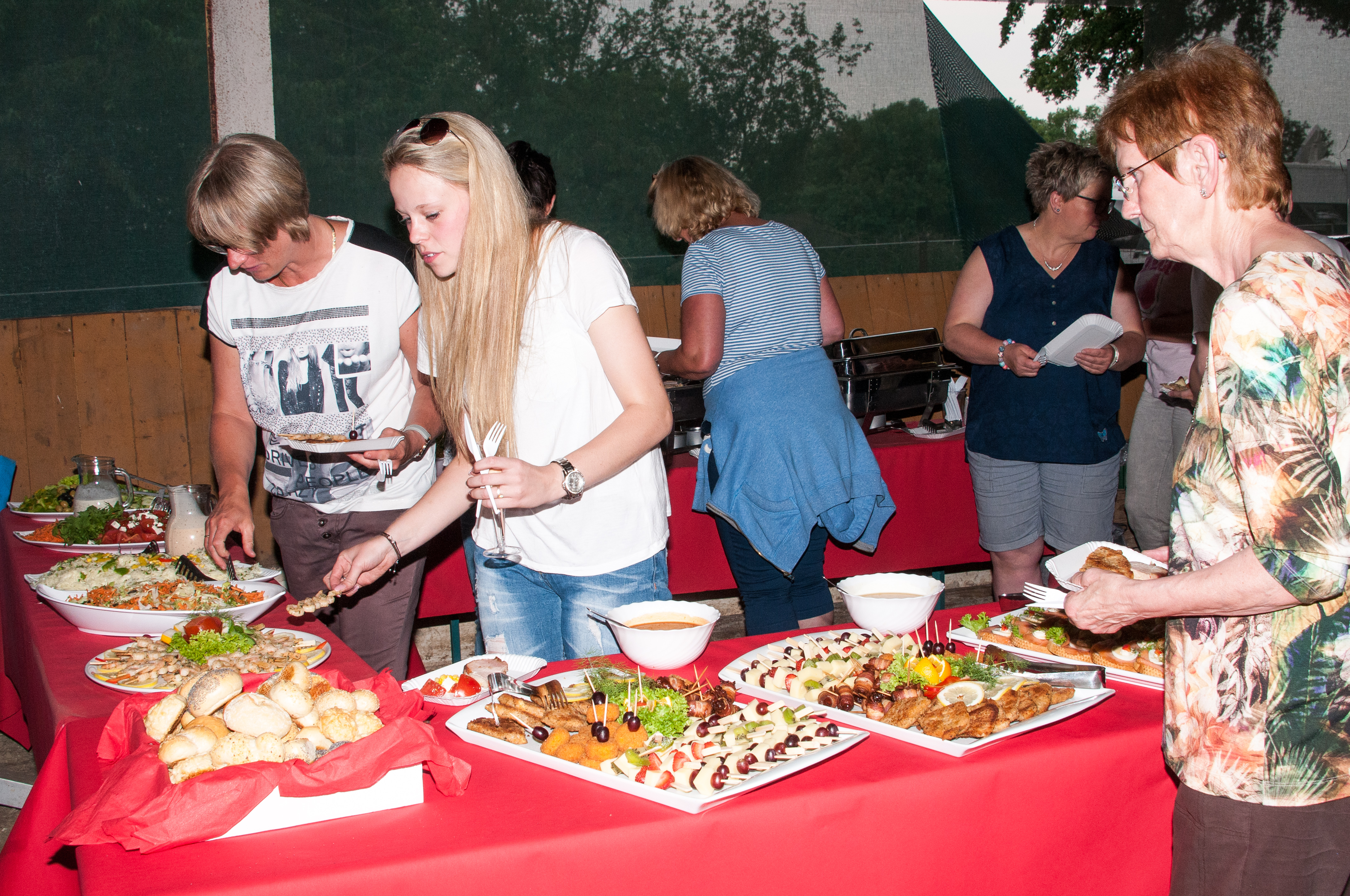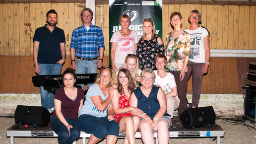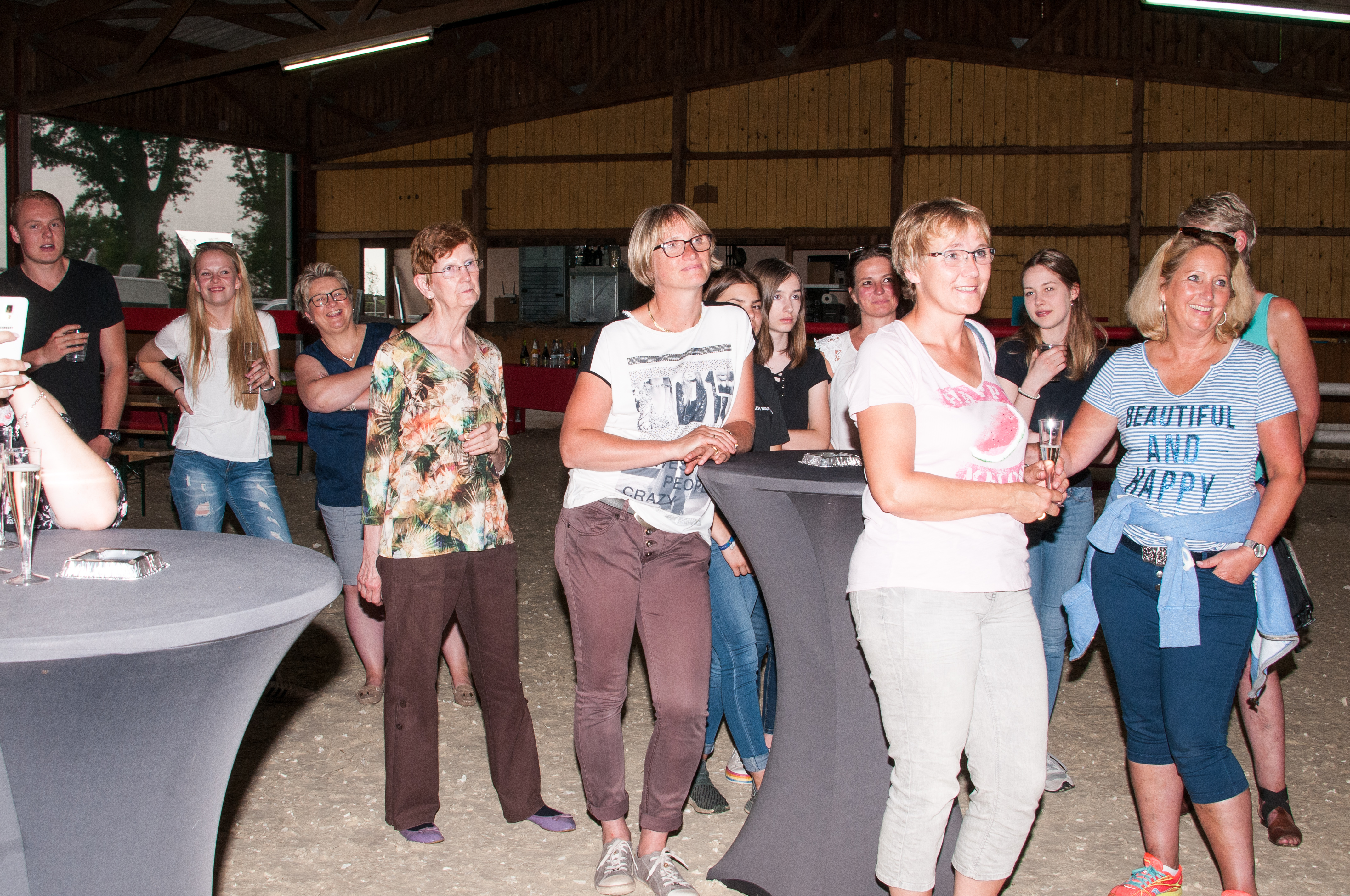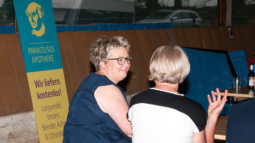 Weil die Apotheke nicht genug Platz für alle bietet, wurde kurzerhand auf dem Pferdehof gefeiert. Apotheker Hannes Clasen hatte seine Mitarbeiter eingeladen und jeder durfte jemanden mitbringen. So war es eine bunte Mischung, die Kims Auftritt lauschte.