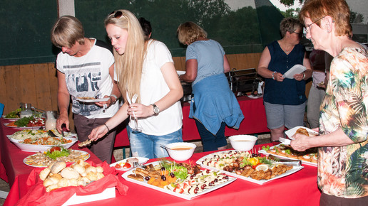 Ein weiteres Higlight des Abends war das gebratene Spanferkel. Die Gäste fanden's klasse, Kim war wie immer der charmante Star und traf viele alte Bekannte wieder – aus ihrer Zeit als Praktikantin. Mit diesem Konzert ging die erste Runde der Apotheken-Konzerte zu Ende.