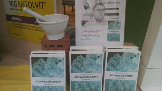 Tatort ist Tübingen, die Beteiligten sind ein Apothekerclan und die Pharmalobby, der BKA-Ermittler Tom Wenzel und eine affärenwürdige Apothekerin. Das kriminelle Material ist Crystal Meth, im Reginonalsound auch „Schwabenstoff“ genannt. Wer jetzt angefixt ist, sollte den gleichnamigen Krimi von Andreas Straub lesen.
