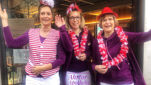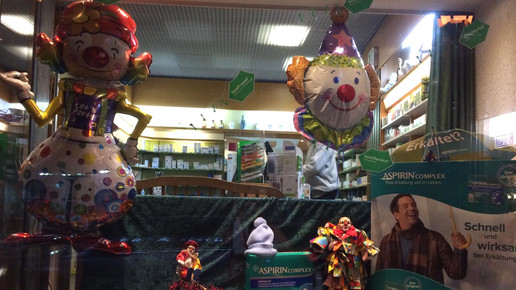 In einer solchen karnevalsverrückten Apotheke kam es auch schon vor, dass das Team von Hartmann, welches rein weiblich ist, an Weiberfastnacht in voller Verkleidung im Handverkauf und in der Apotheke steht. In diesem Jahr darf ein Großteil der Mitarbeiterinnen sogar am Rosenmontag mit dem Prinzen feiern – eine Approbierte hat sich bereit erklärt, den Dienst zu übernehmen.