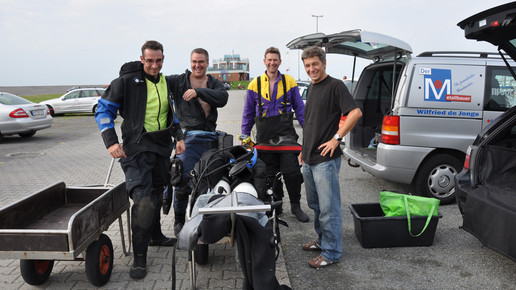Zurück in Deutschland lernte er in einem Tauchclub Dirk Terbeek kennen. Er ist Arzt und Versicherungsmakler, Taucher seit Kindheitstagen. Im Sommer 2007 unternahmen sie den ersten Nordsee-Tauchgang. „Wir haben eine Schiffschraube gesehen und wollten wissen, was das ist.“ Der Forschergeist war geweckt. Nordsee-Tauchgänge sind tückisch, denn vieles muss stimmen. Einfach mal so ins Meer springen, geht nicht. Wellengang, Temperatur, Gezeiten müssen bedacht werden. „Beim ersten Mal sind wir nur rausgefahren, haben den Anker geworfen und sind an der Boje hinunter.“ Pro Sommer absolvieren sie zehn bis zwölf Tauchgänge. „Mindestens vier bis fünf von uns müssen Zeit haben und die Bedingungen müssen stimmen, das ist gar nicht so einfach.“