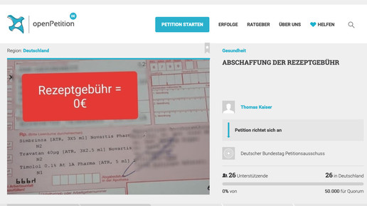 Die Therapiesicherheit dürfe jedoch nicht an einem schmalen Geldbeutel scheitern, fordert der Apotheker. Deswegen will er auf dem Portal openPetition 50.000 digitale Unterschriften für das Ende der Rezeptgebühr sammeln. Ab dieser Zahl muss sich der Petitionsausschuss des Bundestages des Themas annehmen. Kaiser hofft auf breite Unterstützung, auch außerhalb der Apothekerbranche: „Anders als beim Streit um das Versandverbot für Arzneimittel sehen unsere Kunden diesmal, dass sie einen direkten Nutzen vom Vorschlag haben“.