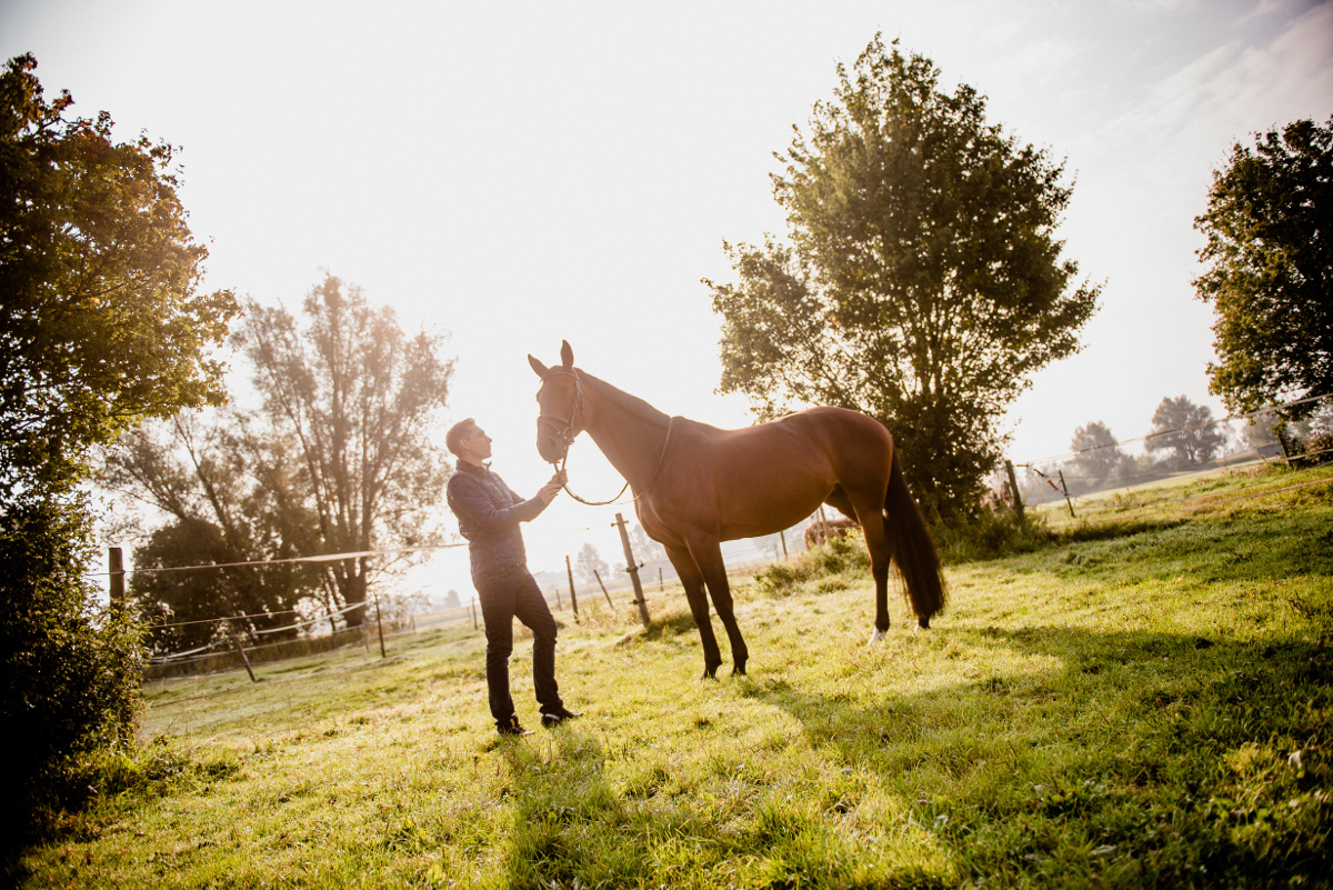 „Ich bin ein Spätberufener“, sagt der 39-Jährige. Jahrelang dem Radsport verbunden, suchte der Inhaber der Brunnen-Apotheke einen Sport, der besser mit seinem Beruf zu verbinden ist. „Es gab beim Radfahren zu viele zeitintensive Trainigseinheiten“, sagt er. Seine fünfjährige Stute Syminka besucht er morgens und mittags kurz, ausgeritten wird dann meistens abends.