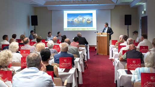 Auch bei der Verleihung der Ehrenpreise in Cottbus übernahm Schiffner die Initiative. Zahlreiche Apotheker, Geschäftspartner, Repräsentanten der Kammer und Oberbürgermeister Holger Kelch waren hierfür ins Lindner Congress Hotel gekommen. Mit einer filmischen Einstimmung mit Szenen aus Effi Briest, passend zum diesjährigen Fontane-Jahr, eröffnete sie den Abend, hielt später einen Vortrag zum Wirken Fontanes als Apotheker und präsentierte den neuen Imagefilm des Apothekenmuseums.