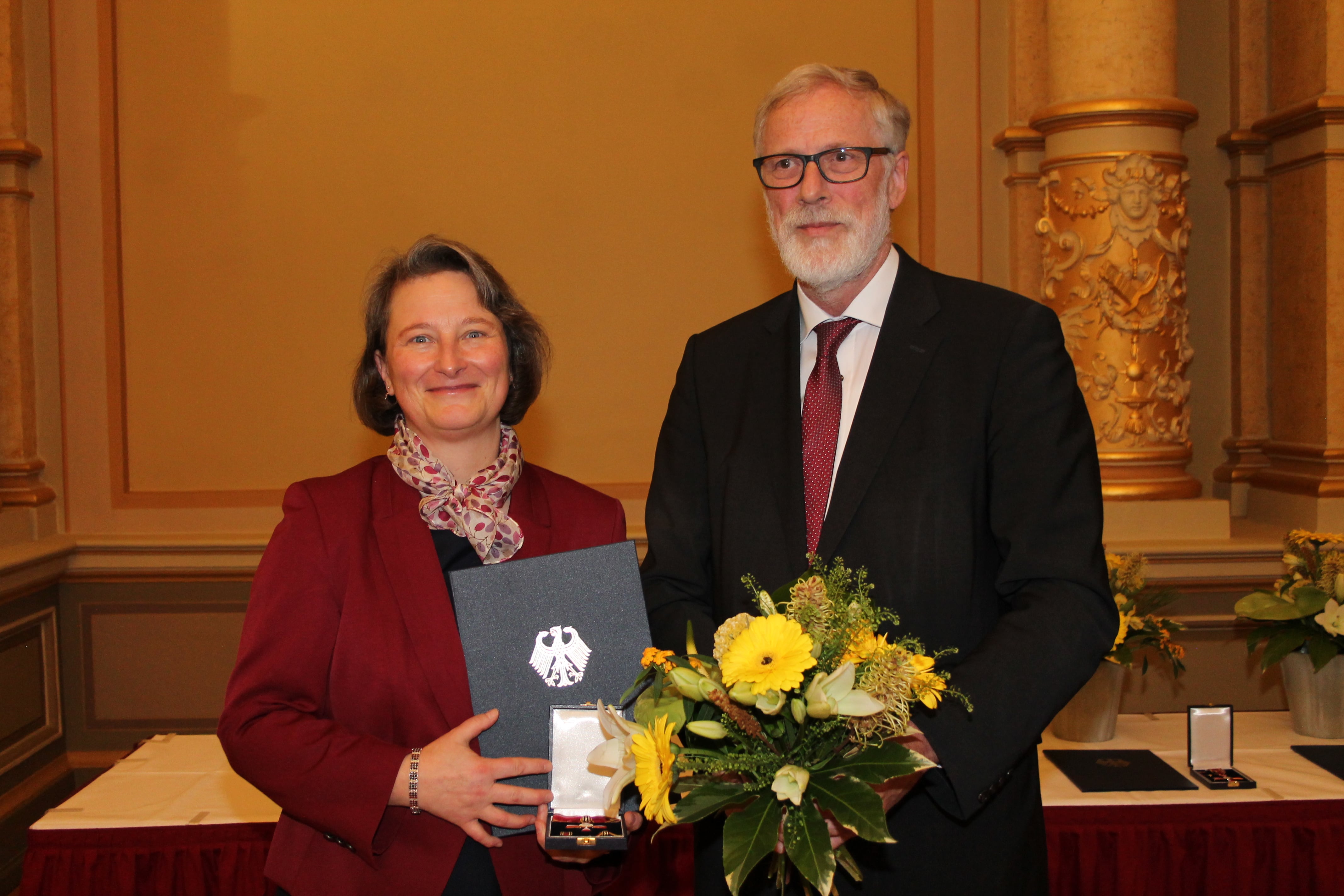 Den Verdienstorden der Bundesrepublik erhielt die Apothekerin von Sachsen-Anhalts Kulturminister Rainer Robra (CDU) in der Magdeburger Staatskanzlei. „Sie haben ein Beispiel dafür gegeben, wie viel durch hohen persönlichen Einsatz bewegt und zum Besseren verändert werden kann“, lobte der Politiker die Preisträgerin in seiner Rede. „Sie verbesserten mit einem hohen Maß an Energie und Eigeninitiative die Situation zahlreicher Familien in Ihrer Region“, fuhr Robra fort.