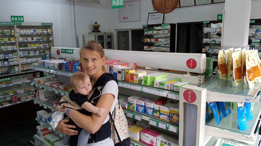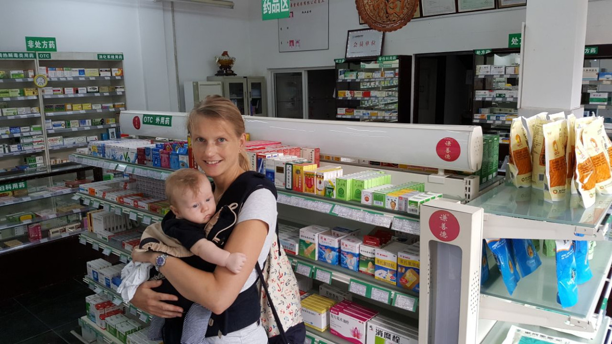 Der erste Eintrag: Hilfe, die Folsäure und das Jod gehen aus! Eine Hiobs-Botschaft für junge Mütter. „Als wir in Shanghai angekommen sind, waren unsere Möbel und persönlichen Dinge noch mit dem Schiff unterwegs. Meine Orthomol Natal Packung war auf dem Seeweg irgendwo zwischen Deutschland und China.“ Also machte sie sich samt Baby auf in die nächste Apotheke. Eine Apothekerin überlässt natürlich nichts dem Zufall, vorher hatte sie die nötigen Begriffe gegoogelt.