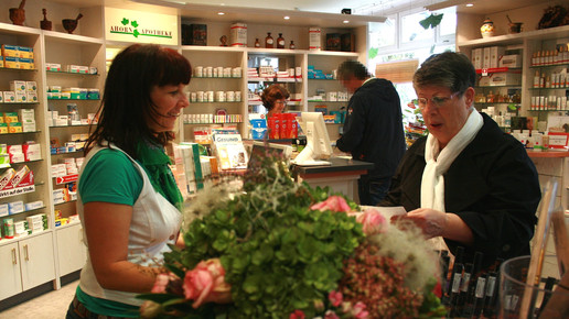 Gefeiert wurde zum Jubiläum der Ahorn Apotheke aber auch. Rittner lud ihre Kunden zu Kaffee und Kuchen ein, der örtliche Bäcker hatte mehrere Bleche zur Verpflegung bereitgestellt. Mit gesunden Geschenken wie Tees und Multivitaminsäften sagte die Apothekerin „Danke“ für die langjährige Treue der Kunden. „Da wir einen Fokus auf Naturheilkunde haben, wollten wir etwas Gesundes anbieten. Kugelschreiber verteilen kann ja jeder“, lacht Rittner. Doch auch der Dank an ihre „langjährigen Mitarbeiter für die fabelhafte Arbeit“ soll nicht zu kurz kommen, so die Inhaberin: „Das gilt insbesondere für meine PKA Nicole Hoffmann, die ich seit 25 Jahren an meiner Seite habe.“