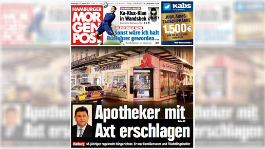 Die Tat passierte abends gegen 19.30 Uhr in der Fußgängerzone von Harburg. Passanten torkelte ein schwer verletzter Mann entgegen, der schließlich zusammenbrach. Rettungskräfte unternahmen Reanimationsmaßnahmen, wenig später wurde im Krankenhaus Harburg der Tod des Apothekers festgestellt.