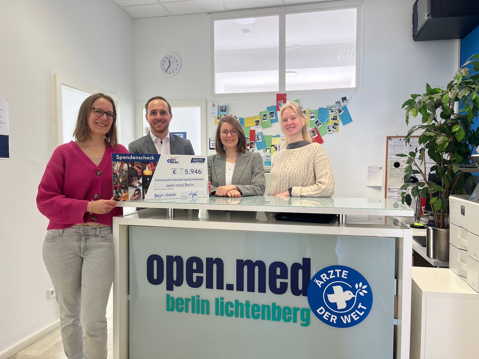 Im Rahmen der Winter-Spendenaktion „Lichtblick“ spendet Aristo 5.946 Euro für die Praxis open.med in Berlin-Lichtenberg. Das Projekt der gemeinnützigen Organisation „Ärzte der Welt“ soll eine Anlaufstelle für alle Menschen sein, die nicht in eine reguläre Arztpraxis gehen können, weil sie nicht oder nicht ausreichend krankenversichert sind.