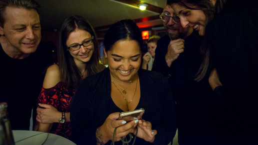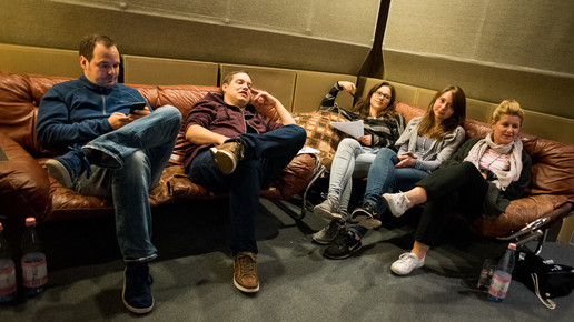 Als die Finalisten am Morgen des letzten Workshop-Tages zum ersten Mal ihre fertigen Songs hörten, flossen Tränen. Die waren bis zum Abend getrocknet. Das Tonstudio wurde für den Konzertabend mit Stehtischen, Drinks und Buffet kurzerhand zur Konzert-Area umfunktioniert. Als die Gäste eintrafen, wurde es für die Finalisten ernst. Die Konzertbesucher waren begeistert von den tollen Stimmen, die Party ging dann noch in der Hotelbar weiter.