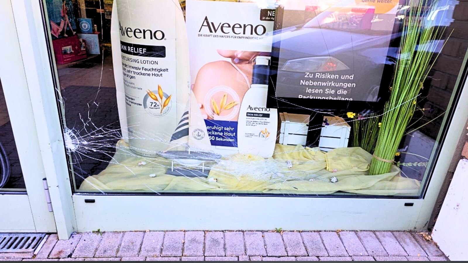 Am späten Dienstagnachmittag ereignete sich direkt vor der Sonnen-Apotheke ein Autounfall. „Eine ältere Dame hat die Kurve zu großzügig genommen“, berichtet Saalfelder. „Ihr ist in dem Moment eine Fahrradfahrerin entgegengekommen, die hat sie angefahren und bis zu meiner Schaufensterscheibe mitgeschliffen.“ Dabei sei das Bein der Radfahrerin zwischen Auto und Apothekenscheibe eingequetscht worden. „Um die Dame zu befreien, rangierte die Autofahrerin ihr Fahrzeug und rammte meine Scheibe erneut“, so die Apothekerin.